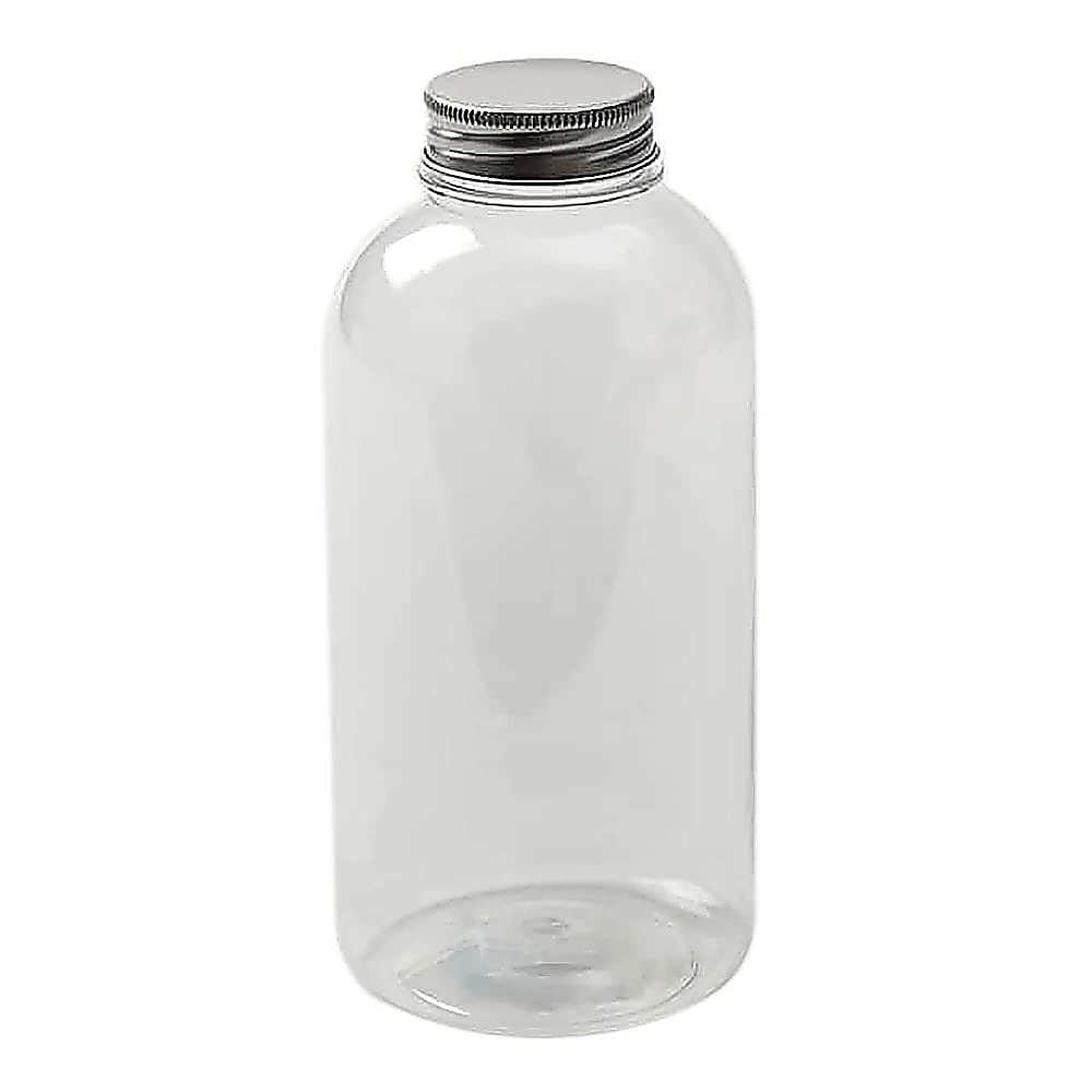 This clear PET beverage bottle from American Metalcraft makes for an ideal to-go drink option. The aluminum screw-on lid adds to the sleek, minimalist design.