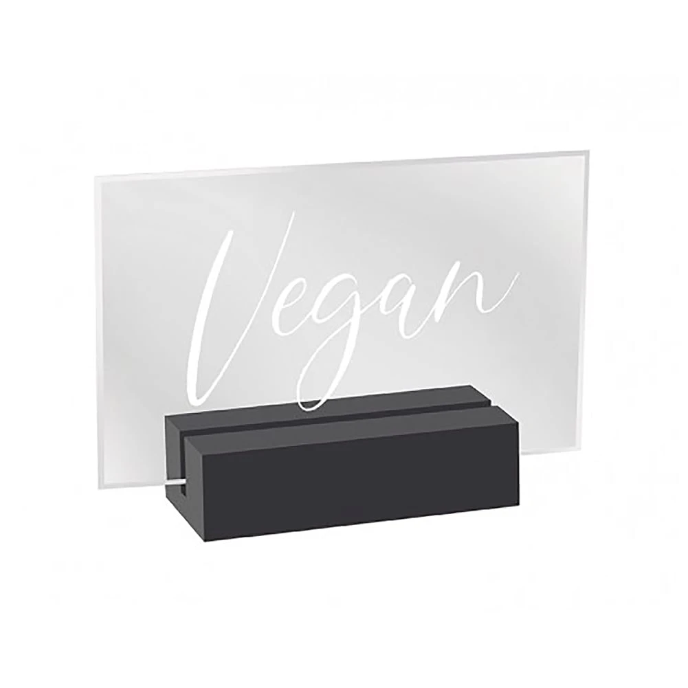 These Black-painted wood base signs prove that it’s the little things that can make big impacts! The minimalistic bases holds the crystal clear acrylic secure, while the bright white modern font brings a contemporary design to an often-used item!