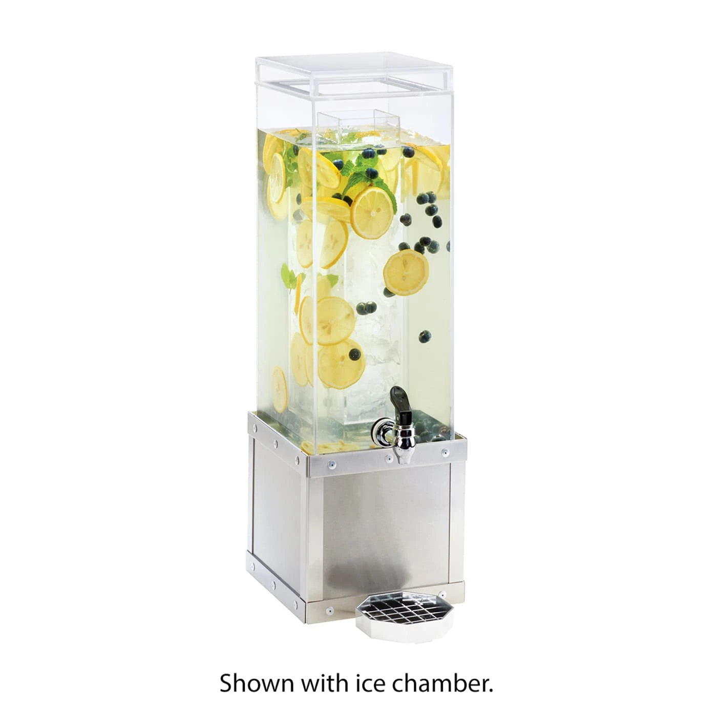 This 3 gallon Urban Beverage Dispenser from Cal‐Mil is constructed of brushed stainless steel and accented by dramatic rivets. It will showcase your delicious beverages while keeping them fresh and chilled.
