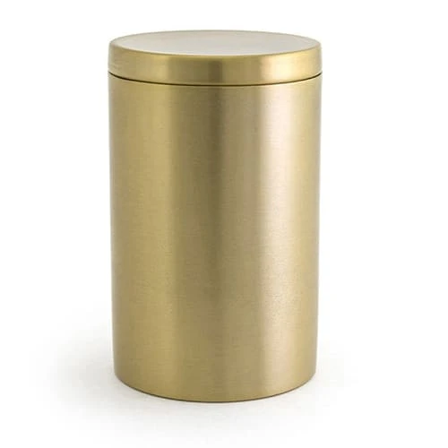 This Front Of The House® Jar is made from stainless steel and has a matte brass finish. It also includes a matte brass lid. This jar can be used for a variety of purposes in restaurants, hotels, and more.