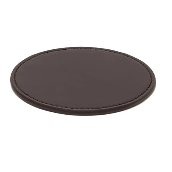 This Front Of The House® Coaster is made from faux leather and comes in a brown color. It is durable, and is constructed around a sturdy form for long-lasting service.