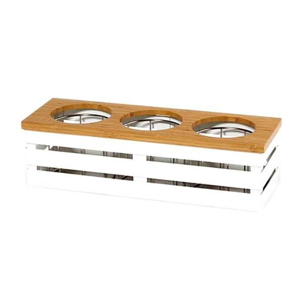 This 3-compartment metal crate decanter holder from G.E.T. Enterprises is perfect for decanters or salad dressing bottles. Each opening has a 4.75″ diameter and it includes ice guard inserts.