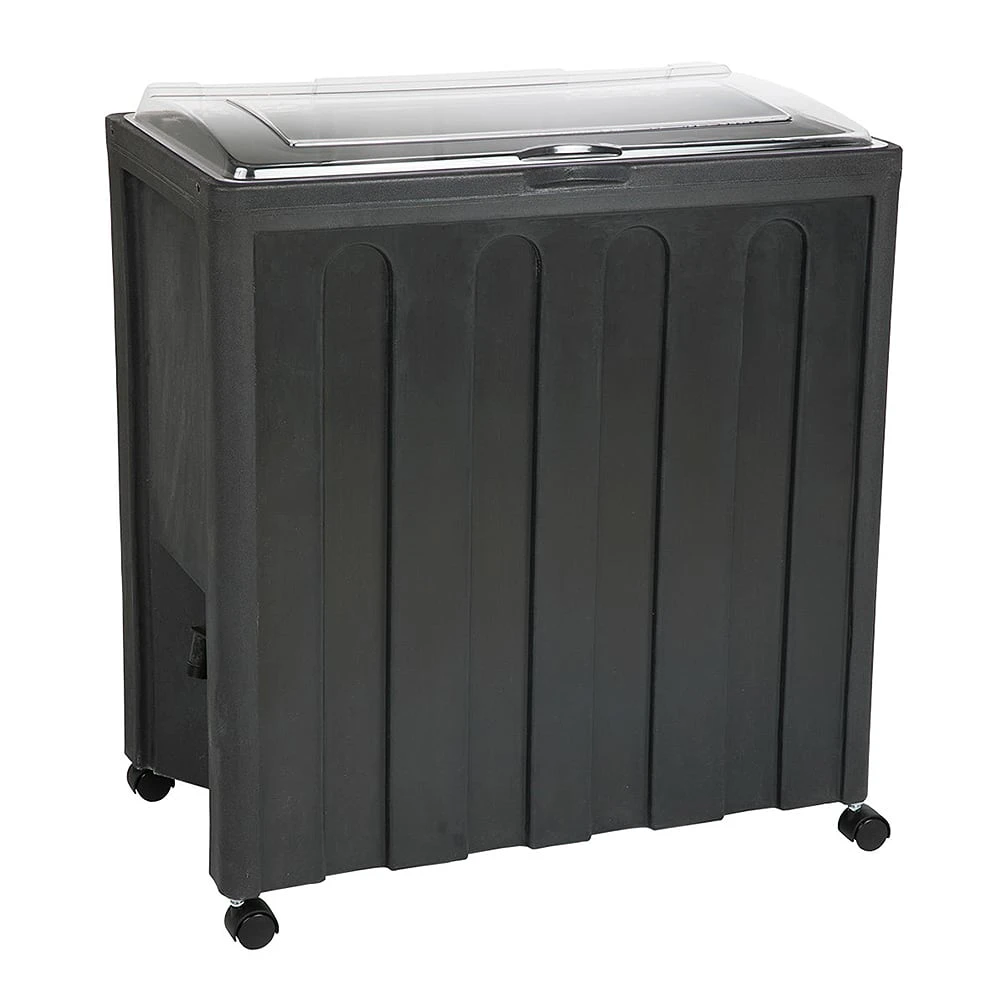 The classic 30-year-old design and demand is still going strong! The Avalanche ice-down merchandiser offers a robust time-tested design, perfect for any C-Store, Venue, or party rental outfitters. The small footprint is perfect for high traffic corridors or squeezing next to checkout counters without causing customer congestion. This portable beverage cooler includes internal slide-in dividers for product separation. The Avalanche mobile cooler has the generous capacity for 112 quarts of ice and product. The highly durable rotomolded exterior is filled with foam insulation, keeping product at optimal coldness for a longer duration with fewer ice refills – saving time and money. The attractive crystal-clear lid sits at the optimal height for ease of access and visibility.