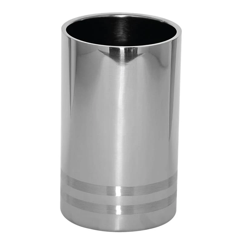 This Service Ideas™ Wine Chiller features stainless steel construction and has double wall insulation. It has a polished exterior with brushed accent bands. This chiller is dishwasher safe.
