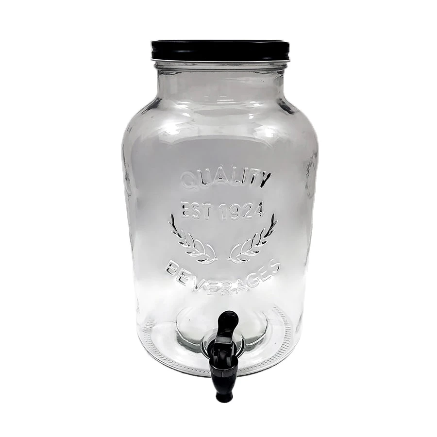 This glass beverage dispenser from TableCraft is part of the Industrial Collection and will add a modern look to your buffet